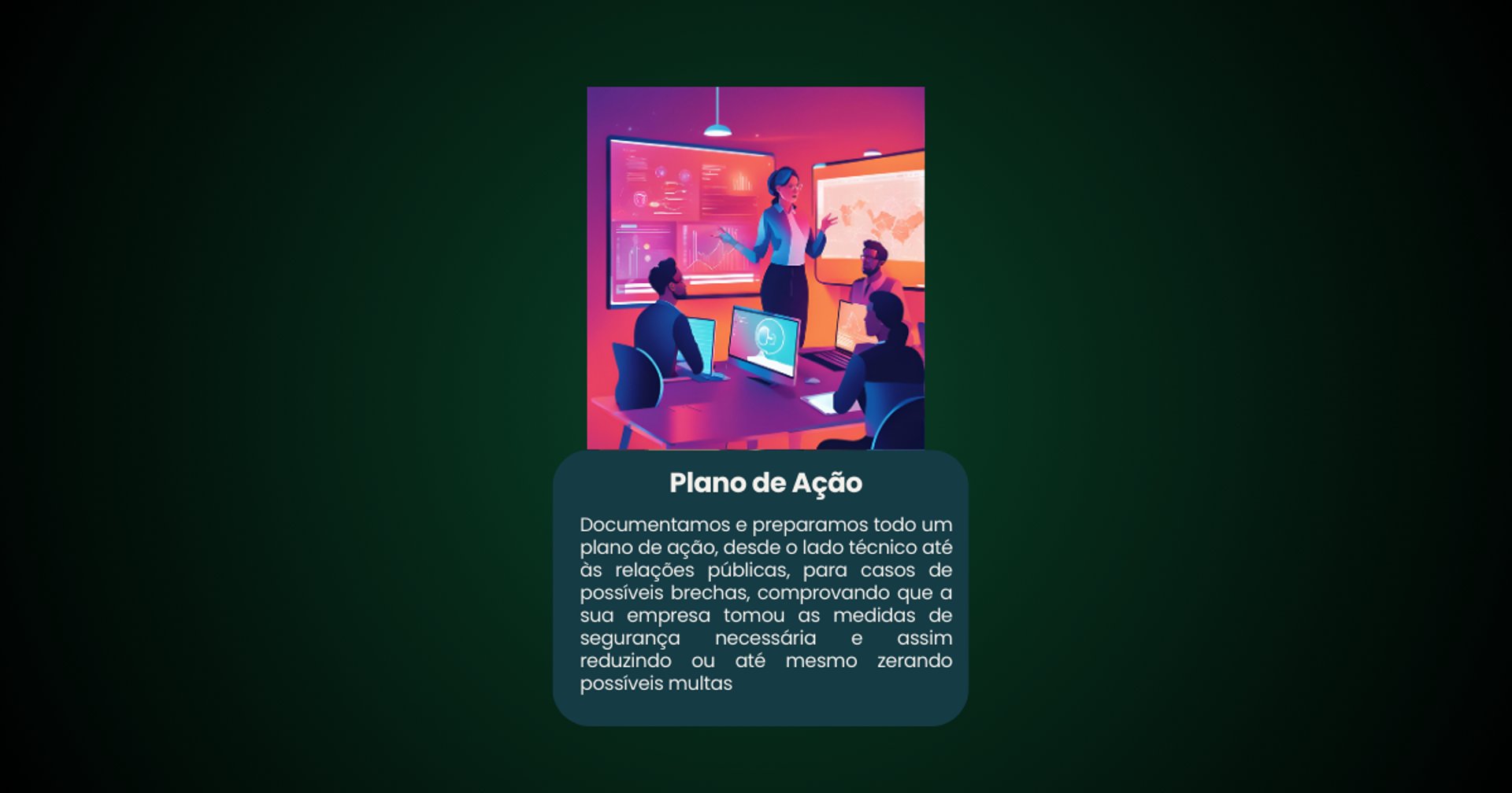Documentamos e preparamos todo um plano de ação, desde o lado técnico até às relações públicas, para casos de possíveis brechas, comprovando que a sua empresa tomou as medidas de segurança necessária e assim reduzindo ou até mesmo zerando possíveis multas