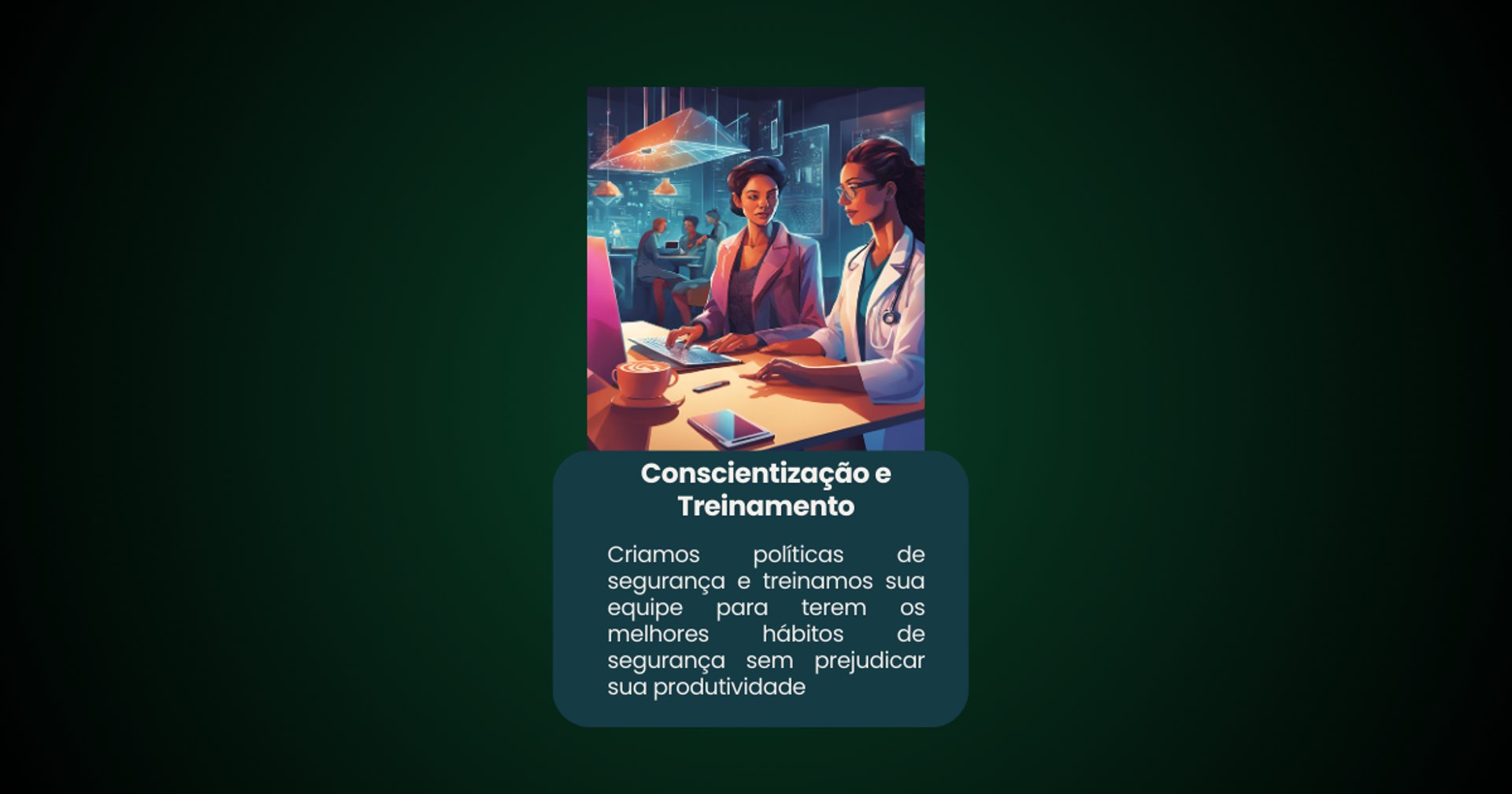 Criamos políticas de segurança e treinamos sua equipe para terem os melhores hábitos de segurança sem prejudicar sua produtividade