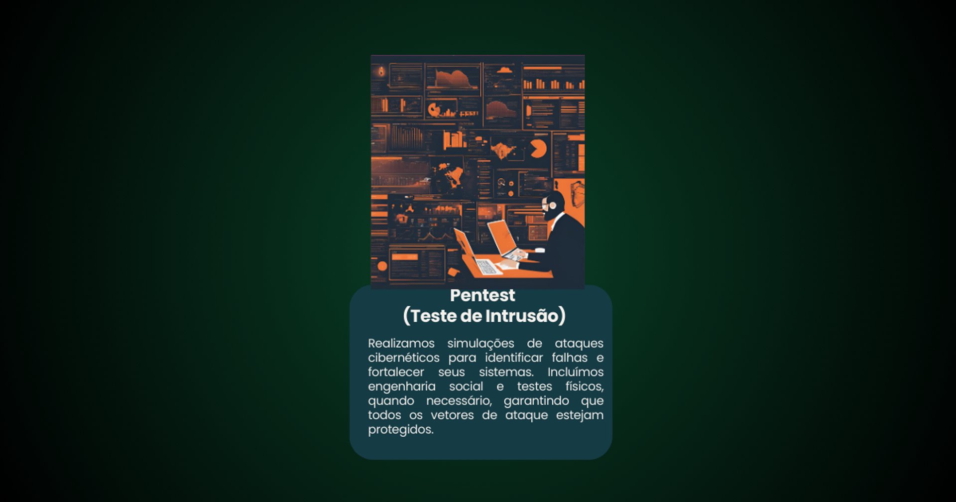Realizamos simulações de ataques cibernéticos para identificar falhas e fortalecer seus sistemas. Incluímos engenharia social e testes físicos, quando necessário, garantindo que todos os vetores de ataque estejam protegidos.